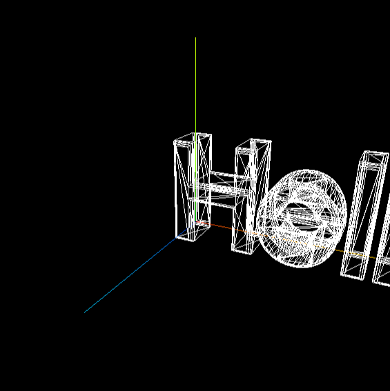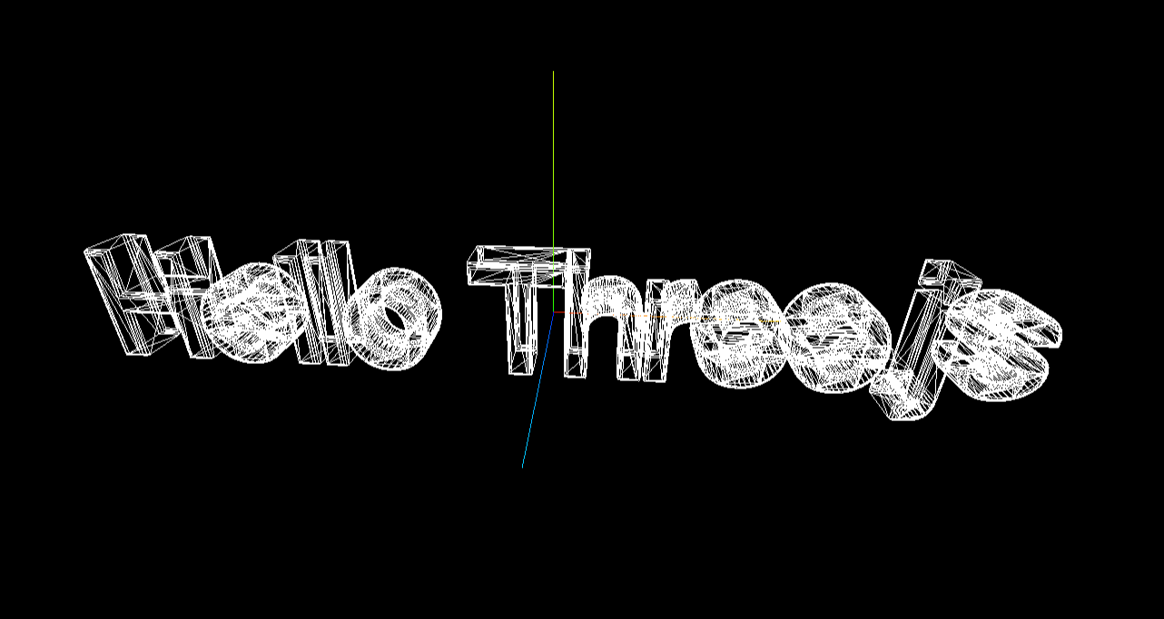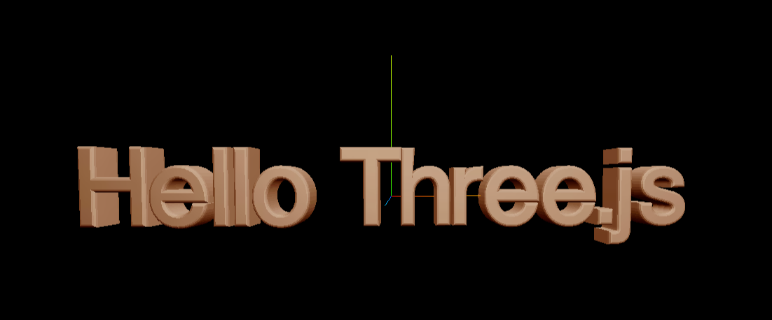 이제 Scene의 (0, 0, 0) 좌표에서 "Hello Three.js:라는 3D Text가 나타나는 것을 확인할 수 있습니다.