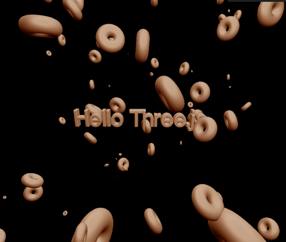 Three.js를 보다보면 3D Text에 도넛(Torus)이 여러 개 배치된 Scene들이 존재합니다. 반복문을 사용해 무작위로 배치해 봅시다.