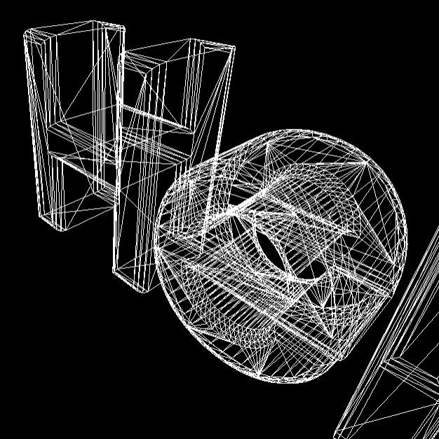 wireframe을 활성화해서 보면 텍스트가 얼마나 많은 정점(vertex)으로 이루어져 있는지 알 수 있습니다.