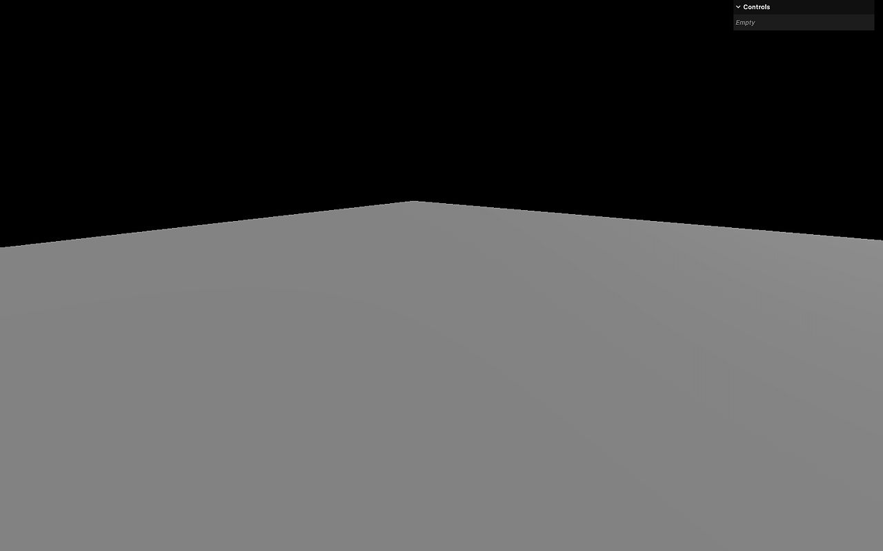 가장 먼저 캐릭터가 딛고 설 땅, 바닥을 만듭니다. PlaneGeometry를 사용하고, y축 0을 기준으로 삼기 위해 x축으로 -90도 회전시켜 평평하게 눕혀줍니다.