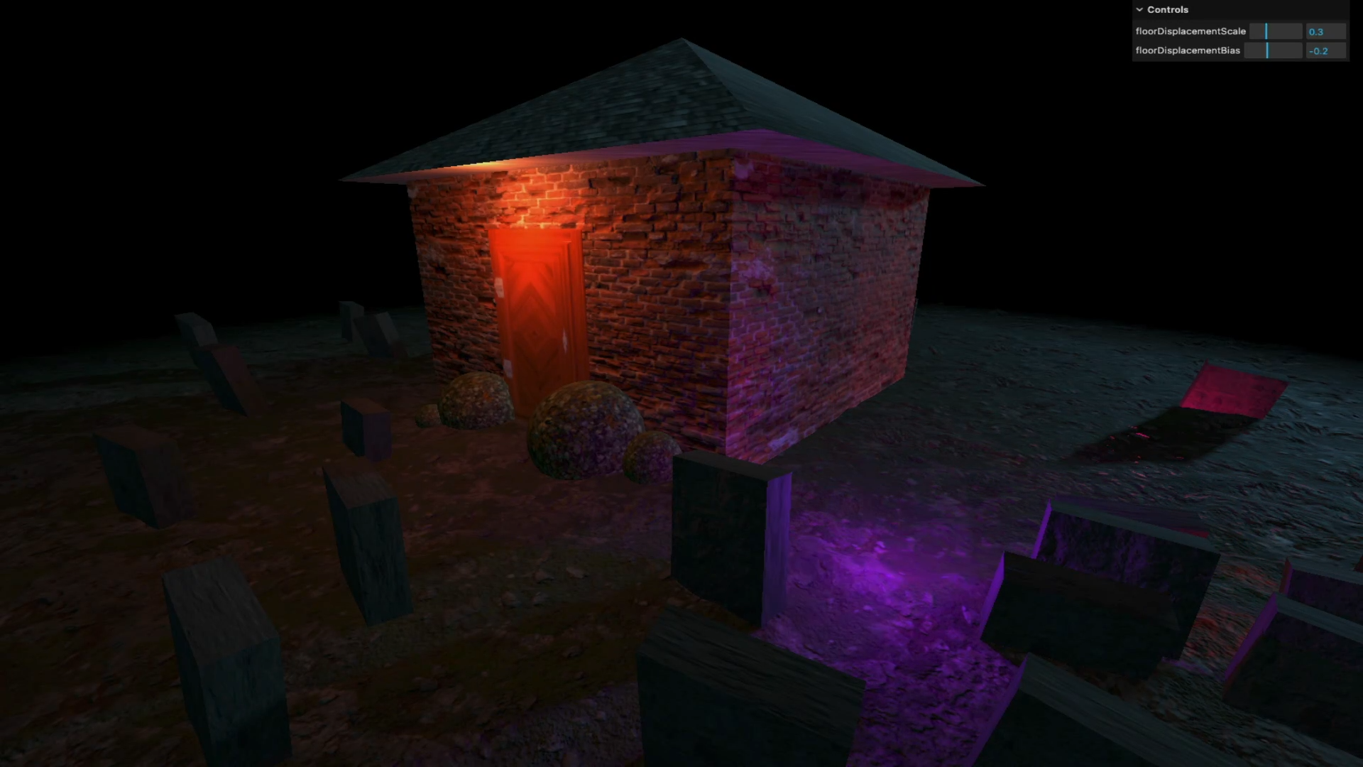 - directionalLight와 세 유령(ghost1, ghost2, ghost3)의 castShadow 속성을 true로 설정하여 그림자를 드리우게 합니다.