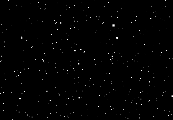 텍스처를 적용하면 바로 문제가 발생합니다. 파티클 텍스처의 투명해야 할 검은색 배경 부분이 뒤에 있는 다른 파티클을 가리는 현상입니다. WebGLRenderer는 기본적으로 각 픽셀의 값의 깊이(z-값)를 테스트하여 어떤 것을 앞에 그릴지 결정하기 때문입니다.