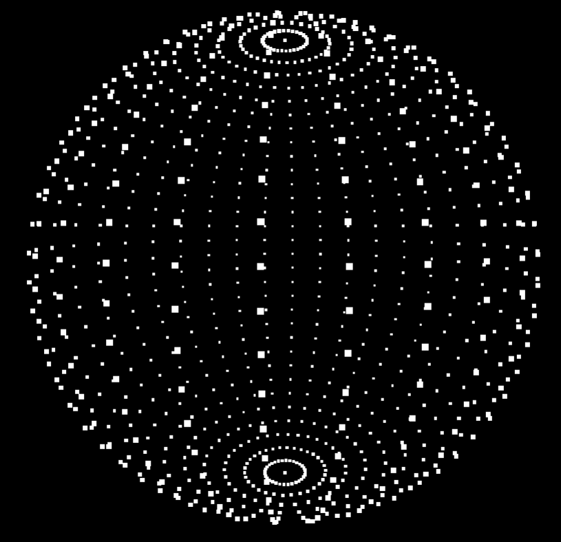 가장 간단하게 파티클을 만드는 방법은 일반적인 Geometry와 PointsMaterial을 사용하는 것입니다. 예를 들어, 구(Sphere) 행텨의 파티클을 만들어 보겠습니다.