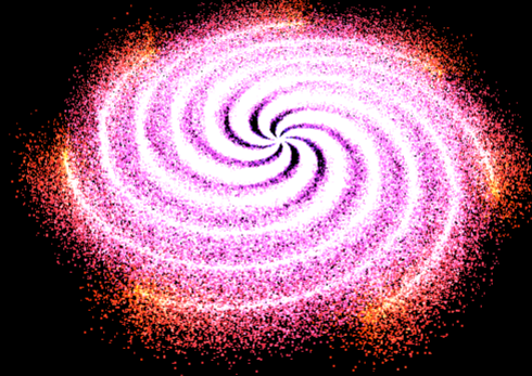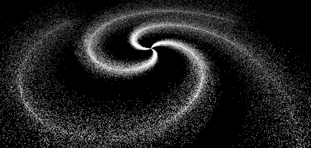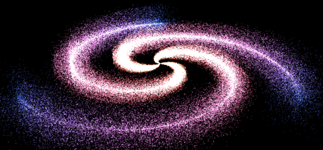 지금까지 만든 은하는 파티클이 너무 완벽하게 정렬되어 있어 인위적으로 보입니다. Math.random()을 이용해 각 파티클의 위치에 무작위 값을 더해 자연스러움을 추가합시다.